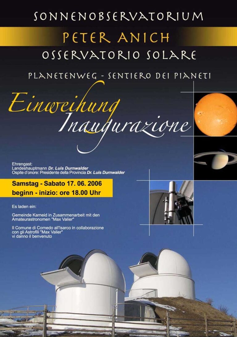 Am 17. Juni 2006 findet die feierliche Einweihung des Sonnenobservatoriums „Peter Anich“ und des Planetenweges statt.